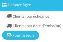 Plusieurs balances âgées sont disponibles. Elles vous permettent de visualiser rapidement combien d'argent vous est dû par vos clients, ou combien vous en devez à vos fournisseurs, et à quelle échéance.