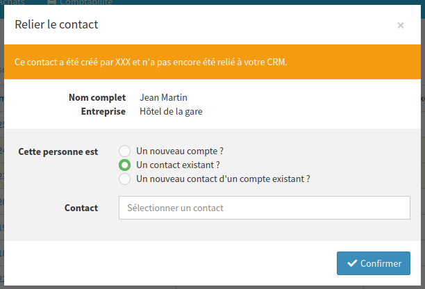 Soit, si vous développez un module externe (application de prise de commande partenaire), vous devrez travailler avec les références externes de contact.