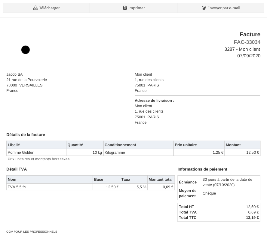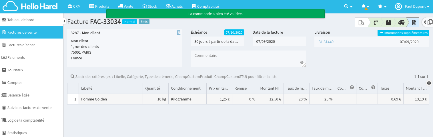 Vous venez de valider votre première commande de vente ; il est temps de regarder votre facture.
