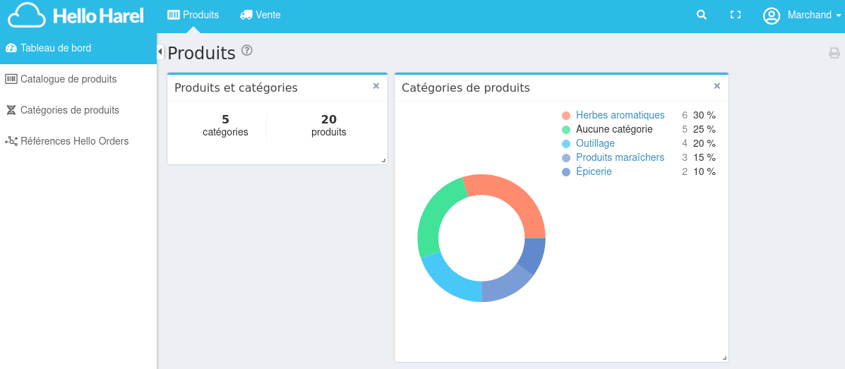 En tant que marchand, vous serez principalement amené à créer des références. Une référence (par exemple : Carottes des sables à 1 € par kg) se rapporte à un produit existant (Carottes).