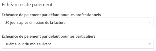 La Définition d'une échéance de paiement est la formule de calcul permettant d'obtenir une date d'échéance à partir de la date d'émission de la facture.